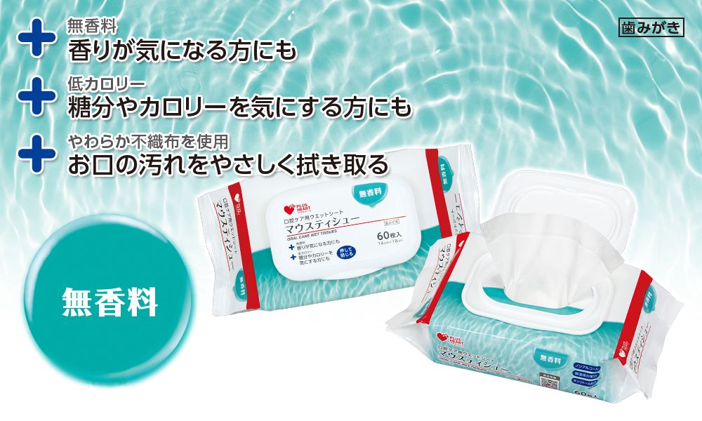 香りが気になる方に使用できる、無香料の口腔ケアウエットティシューです。
